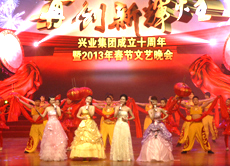 蛟龍昂首高歌去,金蛇迎春送福來(lái),闊步奔騰開(kāi)勝景,春風(fēng)浩蕩展宏圖。1月19日晚,“再創(chuàng)新輝煌”日照興業(yè)集團(tuán)成立十周年暨2013年春節(jié)文藝晚會(huì)在日照市會(huì)展中心盛裝上演。央視著名主持人尼格買提擔(dān)當(dāng)主持嘉賓,李玉剛、任靜、付笛生、王二妮、楊丞剛等明星聯(lián)袂助陣。我集團(tuán)領(lǐng)導(dǎo)班子和來(lái)自興業(yè)各條戰(zhàn)線上的職工代表1600余人歡聚一堂,載歌載舞,共享勝利的喜悅,歡慶新春佳節(jié)的到來(lái)。日照市金融界各大銀行行長(zhǎng)、新聞媒體、業(yè)務(wù)合作伙伴的領(lǐng)導(dǎo)和嘉賓應(yīng)邀觀賞了晚會(huì)。